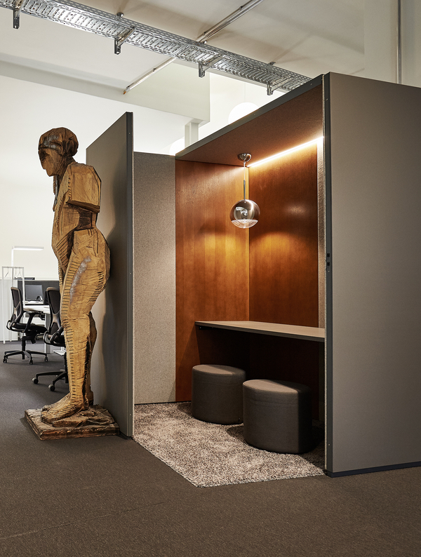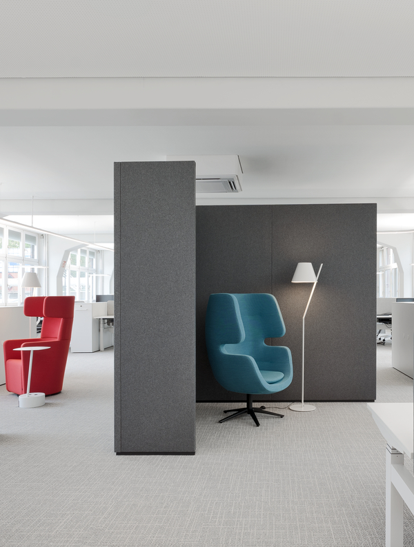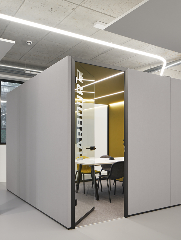 Son large choix de modules, de surfaces, d'extentions et de couleurs s’allie à une esthétique exceptionnelle et contribue à une grande variété de « room-in-rooms ». Des espaces dans des espaces pour des conversations sans perturbation, un travail plus concentré ou pour des réunions plus détendues. Posées stratégiquement dans un espace nos solutions acoustiques offrent un double avantage : isolation à l'intérieur module et absorption phonique à l'exterieur.