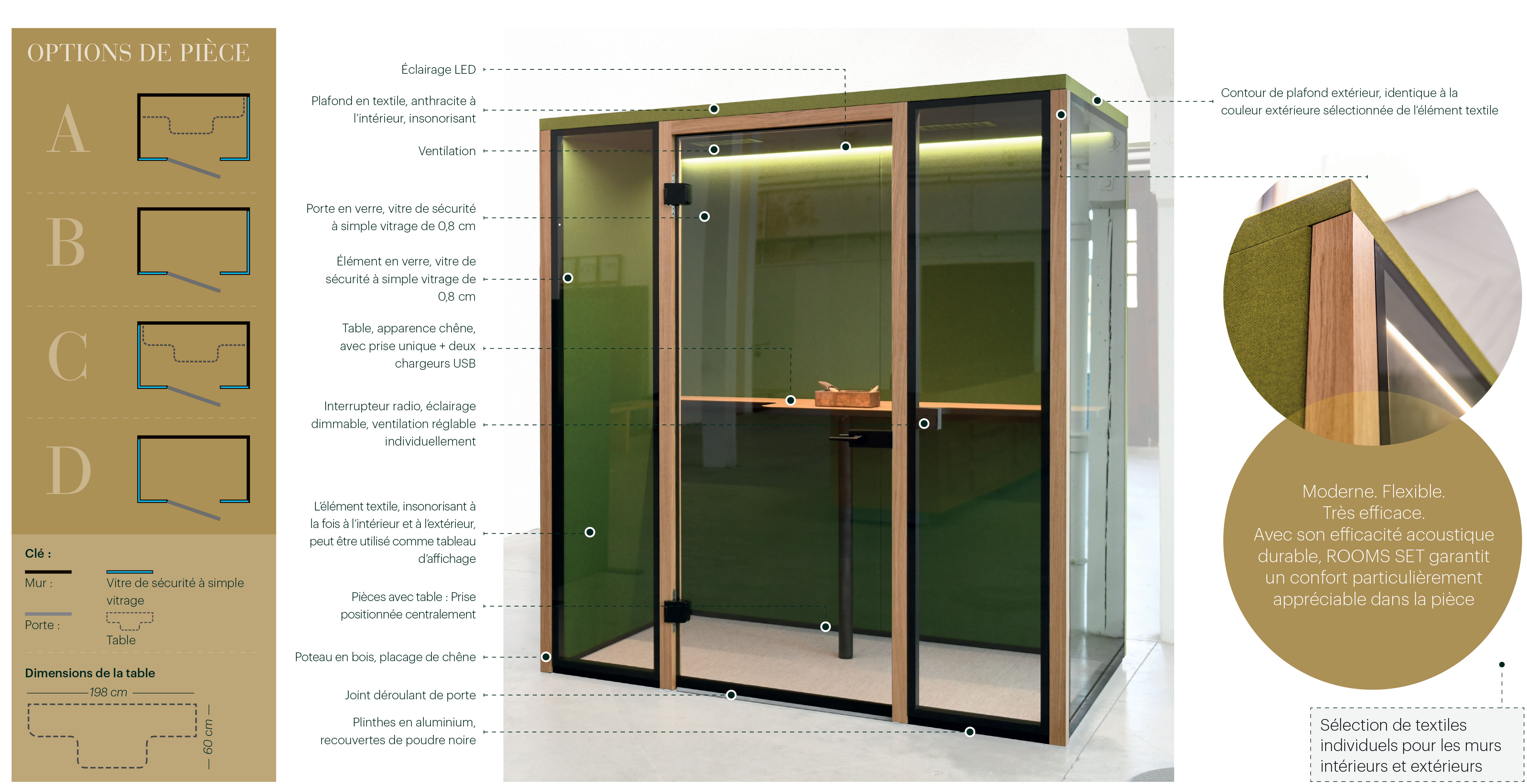 Le choix minutieux des matériaux, surfaces et accessoires assure une ambiance de bien-être très particulière lorsque notre groupe de réflexion (Think Tank) vous invite à l'intérieur pour une réunion debout à deux, un échange virtuel avec des collègues ou une conversation téléphonique dans un espace agréable.