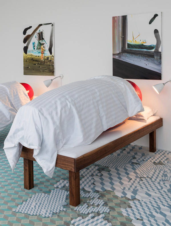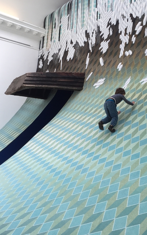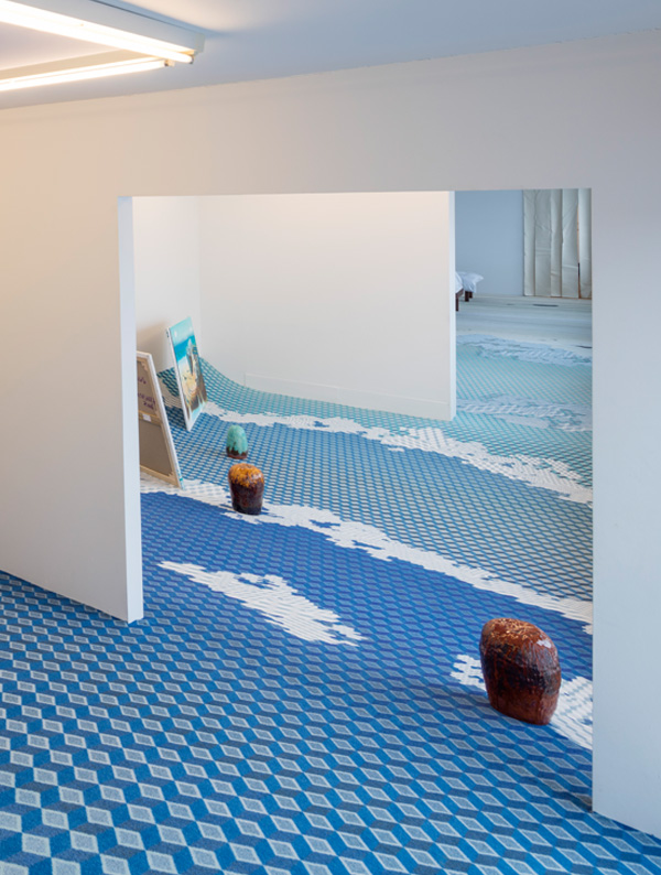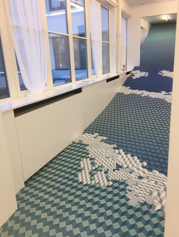 Créée en collaboration avec ege, l'œuvre Tsunami de John Kørner a été exposé à plusieurs endroits : au Miro Gallery Victoria à Londres , au HEART Herning Museum of Contemporary Art au Danemark et plus récemment au JF Willumsens Museum à Frederikssund au Danemark. L'installation est fabriquée à partir de moquettes aux nuances bleues et vertes, qui s'étendent sur 15 m au sol avant de remonter de 4,5 m sur le mur. Selon John Kørner, la moquette est une pièce d'art unique qui renferme un grand potentiel, notamment pour les expositions de grande envergure. Si les moquettes peuvent faire toute la différence, la surface du sol reste un facteur souvent négligé dans le monde de la scénographie.